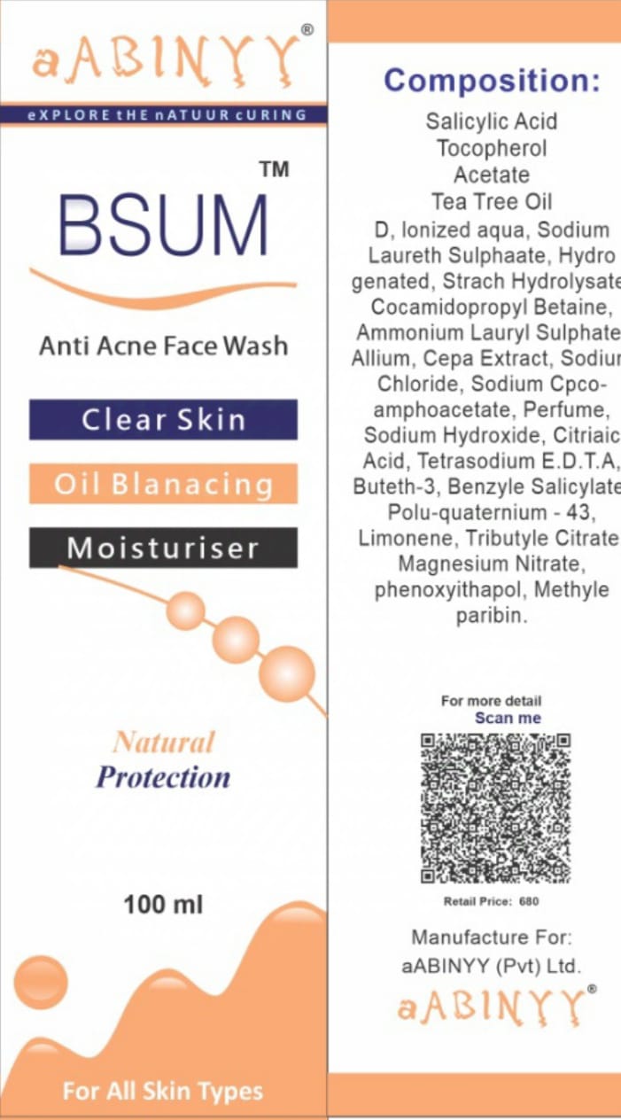 🧴 aABINYY BSUM™ – Anti Acne Face Wash (100 ml)