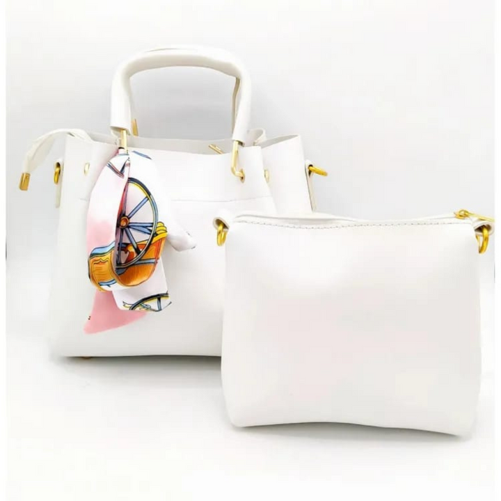 Bring elegance and class to your outfit with this Classic White 2-in-1 Handbag Set, featuring a structured tote bag and a matching pouch — perfect for modern women who love minimal yet luxurious style. The colorful accessory scarf adds a fashionable flair, making it ideal for both casual and formal wear.