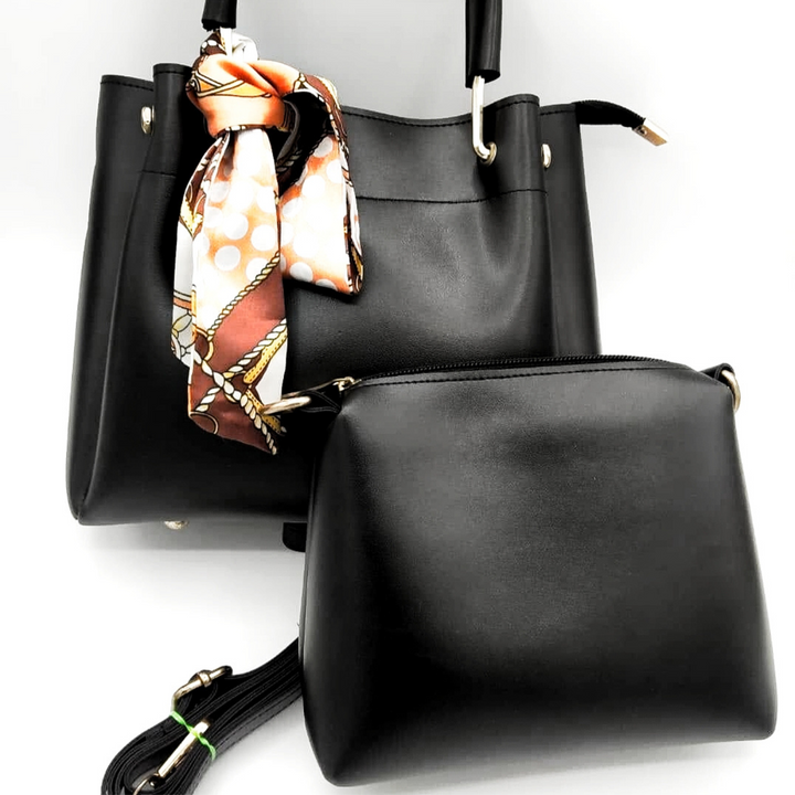 Add a touch of timeless sophistication to your wardrobe with the Elegance Black 2-Piece Handbag Set. This premium combo includes a large tote bag adorned with a stylish printed scarf and a matching crossbody pouch for daily essentials.